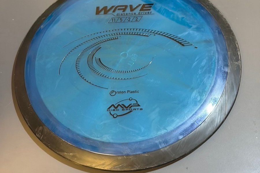 En MVP Wave distance driver disc i Proton plast. Specifikationer: 11/5/-2/2.
