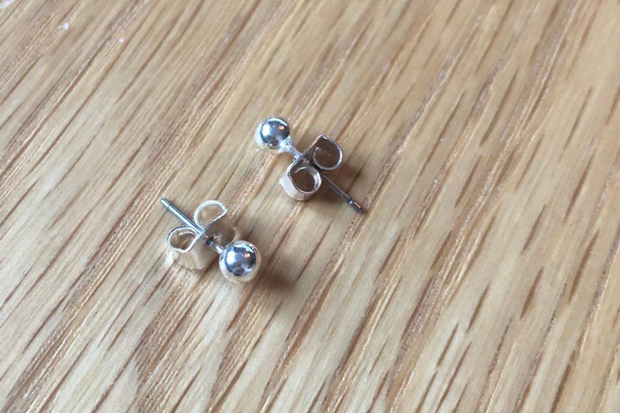Små studs med silverfärgade pärlor.