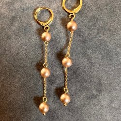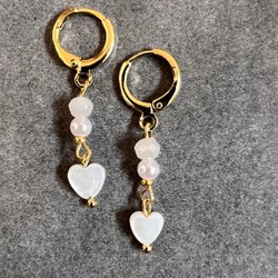 Elegante øreringe med hjerteformede perler, krystalperler og guldfarvede detaljer. Perfekt til at tilføje et feminint touch til dit outfit. 18 karat guldbelagt