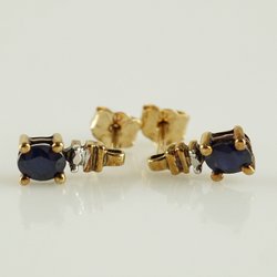 ÖRHÄNGEN, 18K, 1,37g, l:2,3cm, blåa stenar, guld.