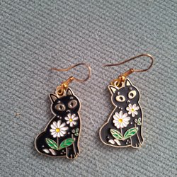 Ett par örhängen med ett guld färgat fäste och ett leopard mönstrat hänge.