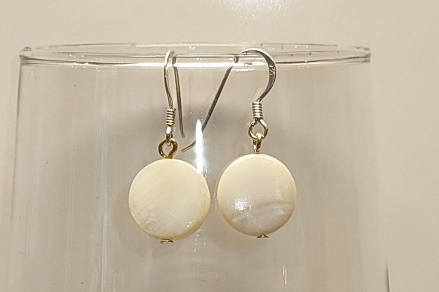 Örhängen Sterling Silver 925 med pärlemor vita pärlor. Handgjorda och oanvända.