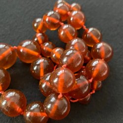HALSBAND MED FINA PÄRLOR AV KONSTGLAS, FRÅN SENARE HALVAN AV 1940-TALET. OMTANKE OM DETALJERNA! GULDBRUNA GLASPÄRLOR HAR GETTS EN LÄTT GROPIG YTA FÖR ATT DE SKA EFTERLIKNA NATURLIGA ÄDELSTENAR. OCH MAN HAR FÖRSETT HALSBANDET MED HAKE OCH SVANS FÖR ATT LÄNGDEN SKA JUSTERAS AV BÄRARINNAN. DÄRTILL KOMMER HAKEN, 2 CM. SVANSEN TILLÅTER EN FÖRLÄNGNING UPP TILL 6 CM.