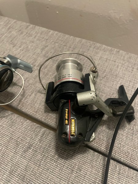 En Mitchell Privilege 40 rulle för fiske. Utrustad med en metallspole och justerbar broms. Passar för olika typer av fiske. Se bilder för detaljer.