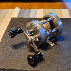 Tror modellen heter 522 den brickan där numret stod på är borta. Saknas även mutter till veven samt att veven är utan dom man håller fingrarna på. Säljes som reserv dels objekt eller om man vill fixa ny vev och mutter så har du en fin gammal ambassadeur rulle. Förutom det som saknas så fungerar rullen som den ska. Kolla bilderna det du ser är det du budar på.