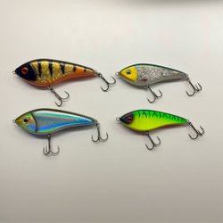 11st Westin Swim. 9st 12cm 53g Suspending. 1st tail 62g suspending. 1st 12cm sinking 58g, (bete nr 4 i högra raden, vitt öga.) Nyskick.