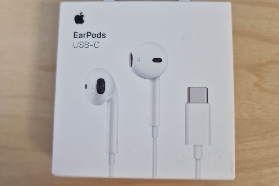 Apple EarPods med USB-C-kontakt. Dessa hörlurar är designade för att ge en klar ljudupplevelse och är kompatibla med enheter som har en USB-C-port.