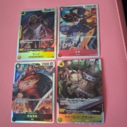 Säljer One Piece-kort med karaktärerna Koala, Kujyaku, Jewelry Bonney, Rebecca, Black Maria, Shirahoshi och Ulti.