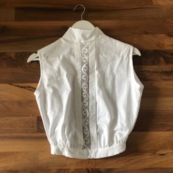Tvättad i 30grader skonsamt eftersom den är handsydd.