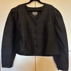 Elegant vintage pennkjol från klassiska modehuset Ungaro Paris. Kjolen har en unik, skrynklig textur och en vacker guldfärgad nyans. Perfekt för att  ge en touch av lyx till din garderob. Storleksmärkt 44 (liten). Midjemått 74 cm stuss 96 cm, något elastisk i tyget. Fint vintageskick.