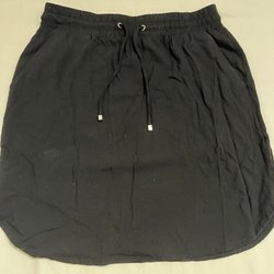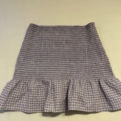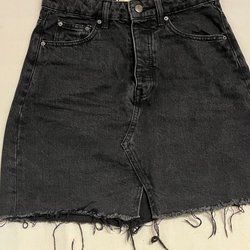 Kjol i denimmodell med en ljusare tvätt. Kjolens längd går ner till knäna och har en liten slits framtill.