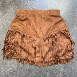 Mörk blå kjol med dekorativa kedjedetaljer. Kjolen har en figurnära passform och en utsvängd nederkant.