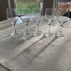 Glas med vacker slipad dekor. 5st mindre vinglas, 5st större vinglas och 6st champagneglas. Felfria