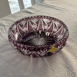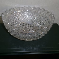 En vacker kristallskål med detaljerat mönster.