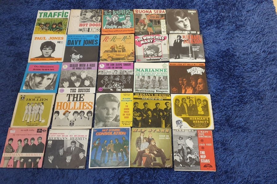 Ett fint parti med 25 vinylsinglar/ep från 60-talet med blandade artister som The Hollies, Herman's Hermits, Traffic, Hep Stars, Michael Jackson m.fl., se bild.