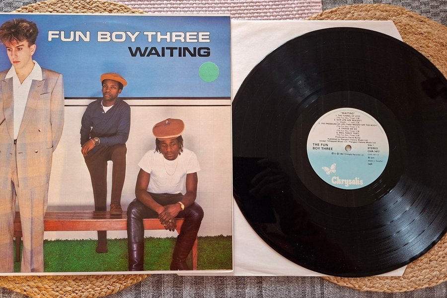 Vinylskiva med Fun Boy Three – Waiting. Skivan är i stereo och spelar i 33 rpm. Katalognummer: CHR-1417, CHR-1417 A. Tillverkad i Sverige.