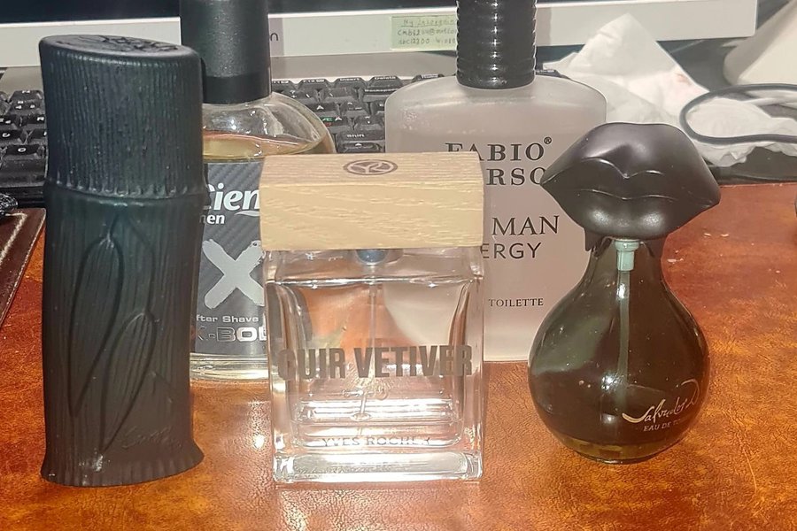 Detta kit innehåller en blandning av parfymer och after shaves. Inkluderar "Cuir Vetiver" från Yves Rocher, "Man Energy" från Fabio, en after shave från Cien och en parfym från Salvador.