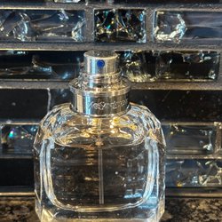 Flaskan är på 100ml och det är ca hälften kvar. Hatten är ej orginal så sitter löst, men spraykorken är orginal och sprayar bra.