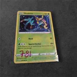 Ett Pokémonkort av typen Dhelmise V. Kortet har attackerna Anchor Anger och Giga Hammer.