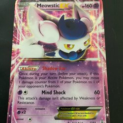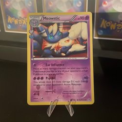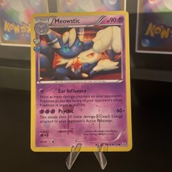Säljer ett Pokémonkort av karaktären Meowstic. Perfekt för samlaren eller Pokémon-entusiasten!