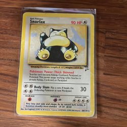 Säljer ett Pokémonkort med Snorlax. Perfekt för samlaren eller Pokémon-entusiasten! De vita på baksidan är blixten från kameran.