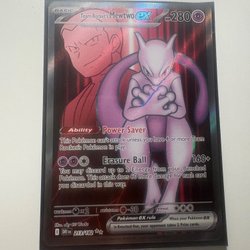 Säljer ett Pokémonkort av Team Rocket's Mewtwo EX. Ett kraftfullt kort för din samling eller för spel.