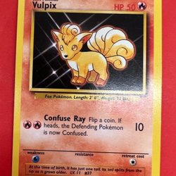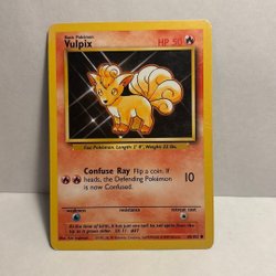 Säljer ett Pokémonkort av Vulpix. Kortet är en Basic Pokémon med 50 HP och attacker som Confuse Ray. Den har svaghet mot vatten och retreat cost är en stjärna. Kortet är nummer 68/102.