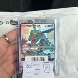 Säljer ett Pokémonkort av Rayquaza. Perfekt för samlare och Pokémon-entusiaster!