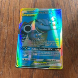 Et sjældent Blastoise GX Pokemonkort. Perfekt til samlere og Pokemon entusiaster.