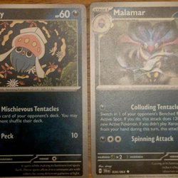 Malamar Pokémonkort. Kortet är en Stage 1 Pokémon och utvecklas från Inkay. Den har attackerna Psybeam och Energy Slosh.