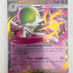 Säljer ett Pokémonkort av Mega Gardevoir EX. Kortet har attackerna Overflowing Wishes och Mega Symphonia. Drog den idag så helt ny.