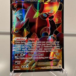 Säljer ett Pokémonkort av Volcanion EX. Kortet har förmågan Steam Up och attacken Volcanic Heat.
