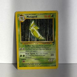 Säljer ett Pokémonkort av Metapod. Perfekt för samlaren eller Pokémon-entusiasten!