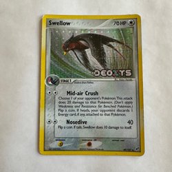 Säljer ett Swellow Pokémonkort. Kortet har attackerna Add On och Speed Wing.