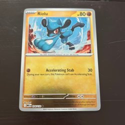 Säljer ett Pokémonkort med Riolu. Perfekt för samlare och Pokémon-entusiaster!