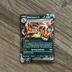 Säljer ett Pokémonkort av Charizard ex. Ett kraftfullt kort för din samling eller lek.