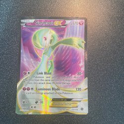 Ett Pokémonkort med Gardevoir EX. Kortet är av typen Basic och har 170 HP. Den har attackerna Link Blast och Luminous Blade. Kortet har svaghet mot metall och resistans mot fighting.