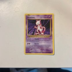Säljer ett Pokémonkort av Mewtwo. Kortet är från Wizards of the Coast och har nummer 150.