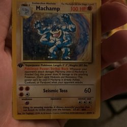 Säljer ett Machamp Pokémonkort. Se bilder för detaljer.