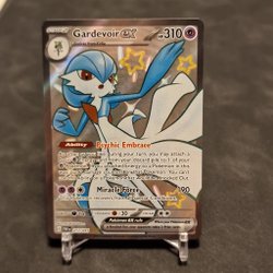 Ett Pokémonkort av Gardevoir EX. Perfekt för samlare och spelare.