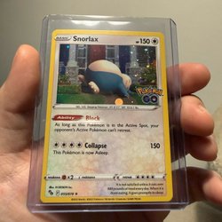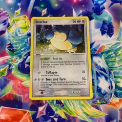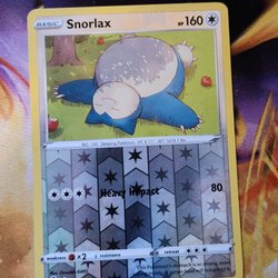 Ett Snorlax 122 Holo Pokémonkort till salu. Det vita på baksidan är blixten från kameran.
