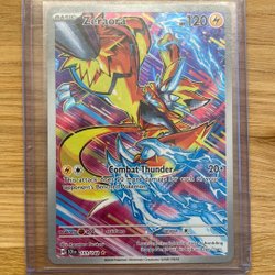Säljer ett Pokémonkort av Zeraora. Kortet är från Scarlet & Violet serien och har nummer 151/142.