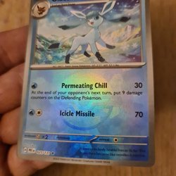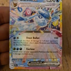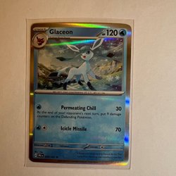 Pokémonkort av Glaceon. Kortet är i bra skick och redo för en ny samling.