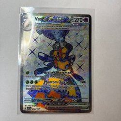 Säljer ett Pokémonkort av typen Koraidon ex. Kortet har förmågan Dino Cry och attacken Wild Impact. Se bild för detaljer.