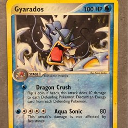 Säljer ett Pokémonkort. Detta är ett Gyarados EX kort. Perfekt för samlare eller spelare!