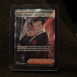 Säljer ett Pokémonkort av Team Rocket's Giovanni. Kortet är ett Supporter-kort från Trainer-serien.