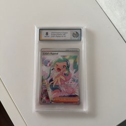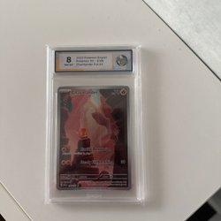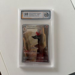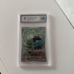 Säljer ett graderat Pokémonkort från serien Temporal Forces. Kortet är ett Deering Full Art och har fått graderingen 10 av RaukCard.