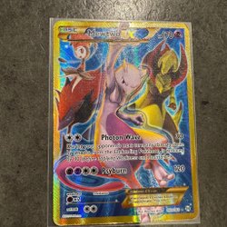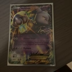 Säljer ett Pokémonkort, Mewtwo EX. Kortet har attackerna Photon Wave och Psyburn. Se bild för detaljer.