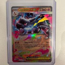 Säljer ett Mega Charizard EX Pokémonkort. Kortet är ett samlarobjekt.