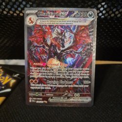 Säljer ett Pokémonkort av Mega Charizard X EX. Se bilder för detaljer.